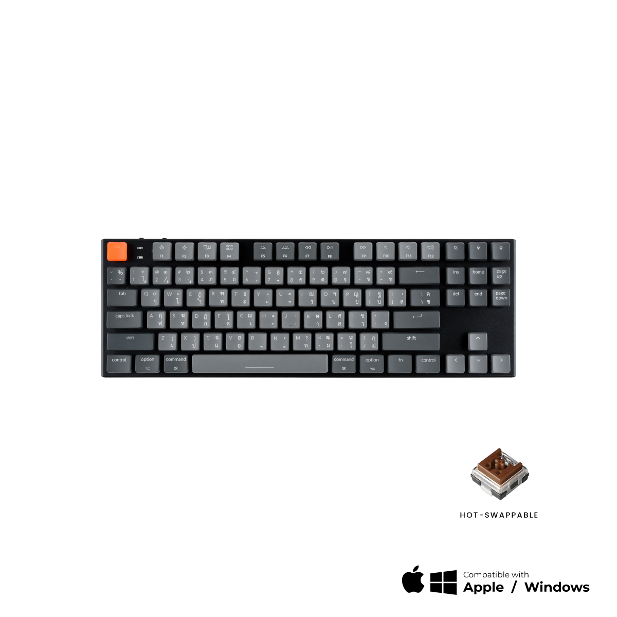 K1 มาใน Tenkeyless layout ทั้งหมด 87 ปุ่ม ใช้งานได้กับทั้ง iOS/macOS และ Windows/Android สลับระบบปฏิบัติการได้ง่าย ๆ ด้วยปุ่ม toggle ด้านข้างคีย์บอร์ด